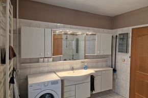 Kühlschrank mit Gefrierfach, Mikrowelle, Herd, Backofen, Spülmaschine, Waschmaschine