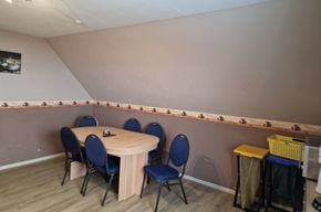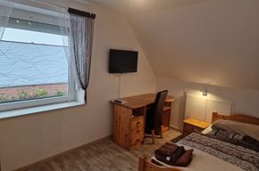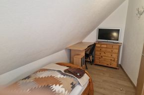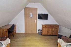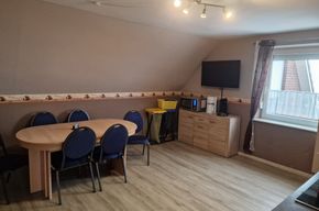 gr. Esstisch mit ausreichend Stühlen, LED-Fernseher