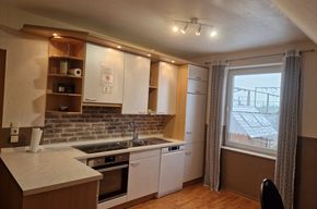Kühlschrank mit Gefrierfach, Mikrowelle, Herd, Backofen, Spülmaschine, Waschmaschine